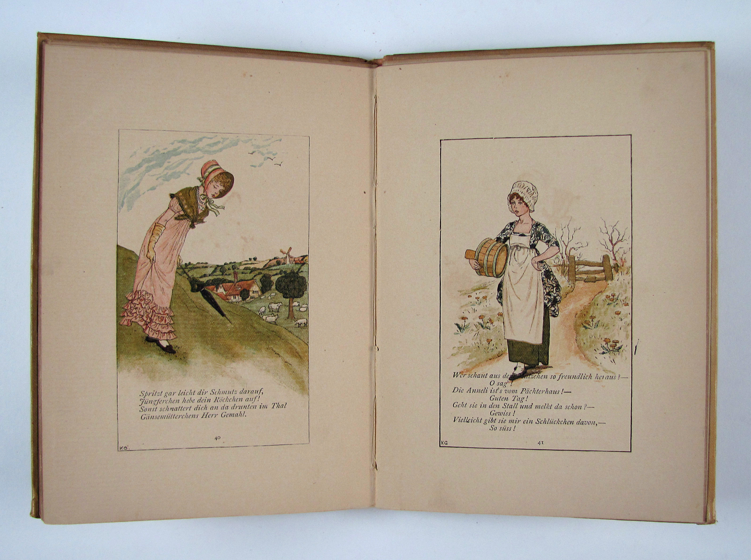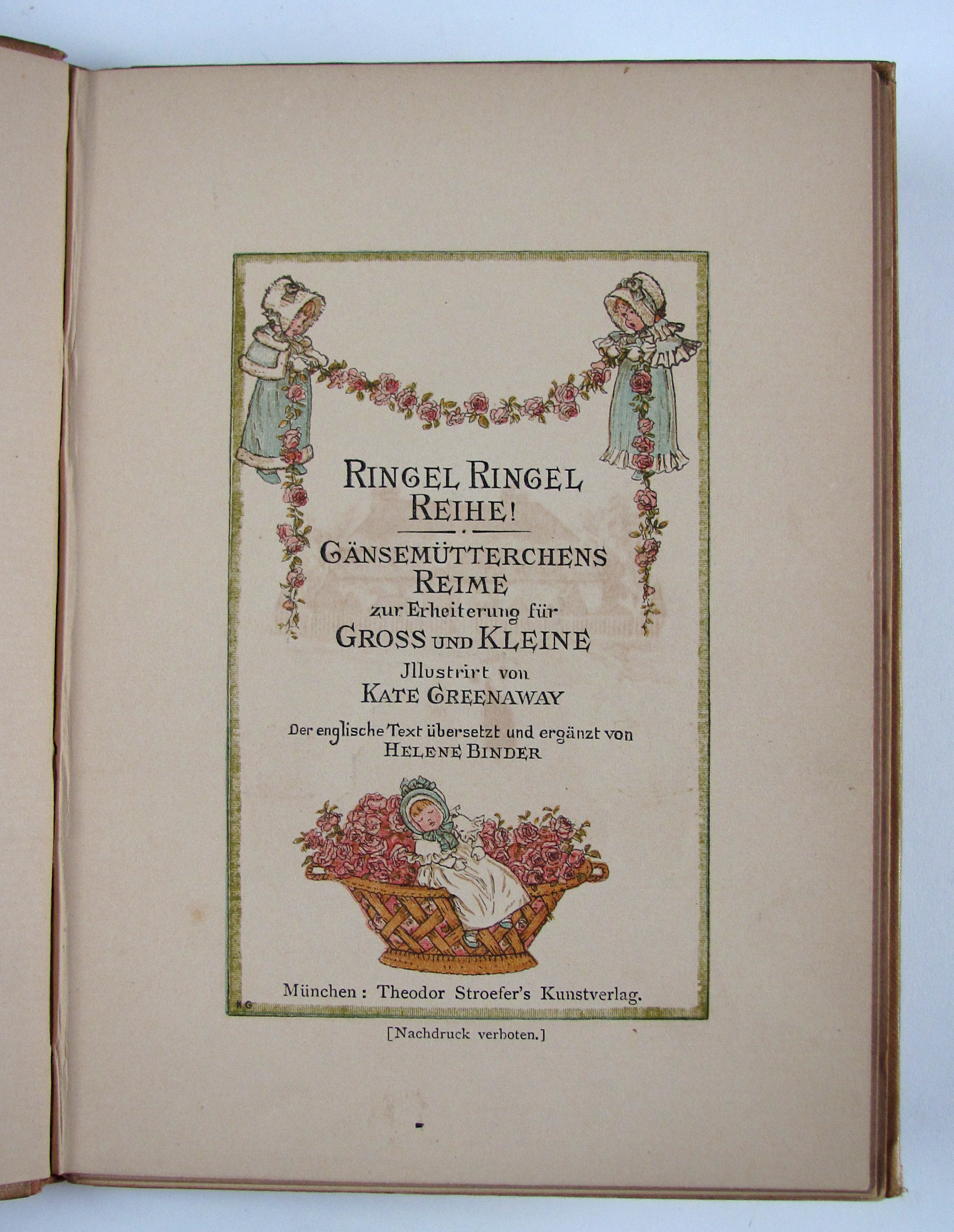 Erste deutsche Ausgabe.– „Die hübsch in Kursiv gedruckten Texte sind entweder die deutschen Entsprechungen der englischen nursery-rhymes oder gute Übersetzungen“ (Seebaß II, 1614).– Papierbedingt gleichmäßig leicht gebräunt, ansonsten tadellos erhalten.– Schuster-Engen 140 (German 1a).Klotz I, 1805/06.