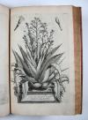 Zweite lateinische Ausgabe des zuerst in 1696 unter dem Titel „Naauwkeurige Beschryving der Aardgewassen“ erschienenen Werkes. Eines der schönsten Blumenbücher des ausgehenden 17. Jahrhunderts, dessen Tafeln die Pflanzen erstmals in dekorativer Absicht und einer künstlerisch freien Art abbilden. Die Pflanzen stehen oft in Verbindung mit Landschaftsstaffagen, ihren Pflanztöpfen, Schriftbändern und sind sogar teilweise als Trompe l’oeil dargestellt.– Die lateinische Ausgabe ist, im Gegensatz zur niederländischen Ausgabe nicht mehr in zwei Teile aufgeteilt und enthält statt einer genauen Übersetzung des Textes ein ausführliches Tafelverzeichnis mit kurzen Beschreibungen und den ausländischen Namen der Pflanzen aus der Feder Frans Kiggelaers. Sie erschien erstmals 1702 und ein letztes Mal 1727.– Abraham Munting „was an eminent professor of botany and chemistry at the University of Groningen … (he also) founded one of the most extensive botanical gardens of the period, known as the ‚Paradise of Groningen‘, which he directed from 1658 up until his death in 1683. Munting wrote a number of works on medical-botanical topics, but his posthumously published ‚opus magnum‘ enjoyed particular success, at least in part due to the novelty of the plates, which, in a radical departure from … the traditional florilegium, presented its plant species against charming landscape backgrounds …The illustrations are remarkable for their elegance and originality … Each plate shows a different plant in flower, including many exotics from America and other distant lands. The plant dominates the foreground, filling the entire page, often with a detail of the fruit or flowers presented on a smaller scale. In some cases the plants are presented à trompe l’oeil, while in others they are arranged in decorated urns. Some gardening tools are depicted as well. The name of each plant appears written on an elegantly fluttering ribbon or cartouche, or on a crumbling marble plaque. The originality of the work lies, however, in the small landscapes that have been inserted into the background of the plates. Here the artist gave free rein to his imagination, delineating scenes that in reality bore little relation to the habitat of the plant. Pastorals with animals and figures alternate capriously with vistas of walled cities and landscapes containing statues and ruins.“ (Oak Spring Flora S. 174).– Gut erhaltenes Exemplar, der Text am Anfang gebräunt und minimal fleckig, die Tafeln sehr sauber.– Hunt 404. Nissen BBI 1429.