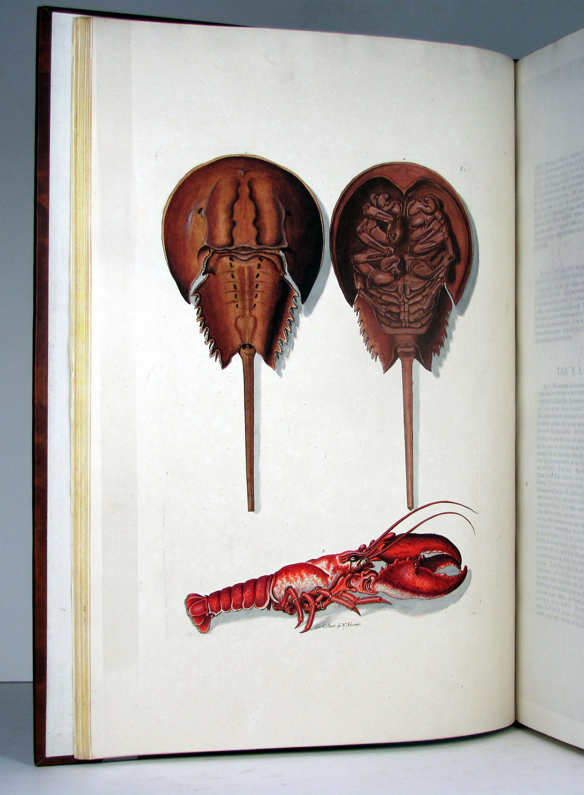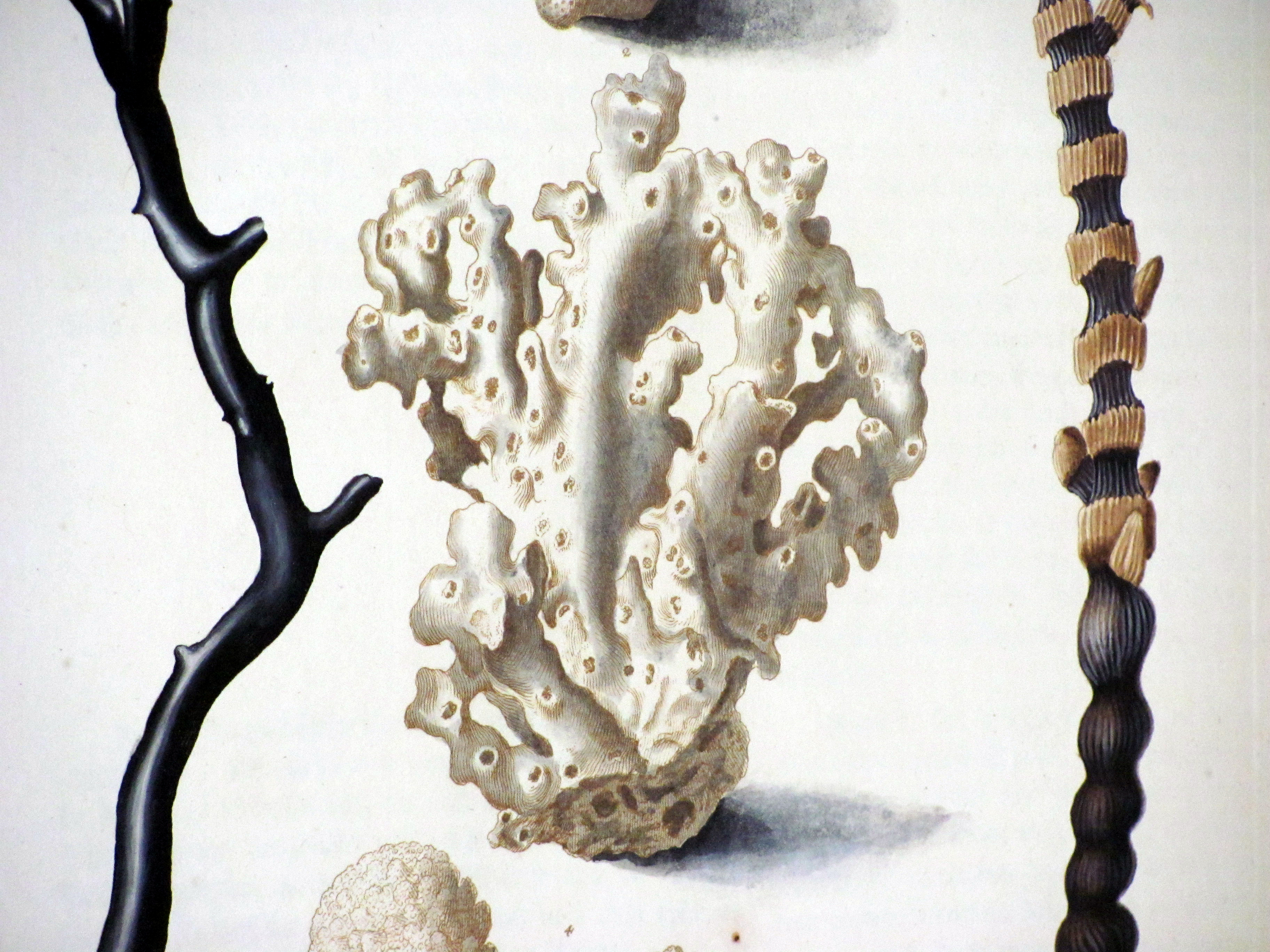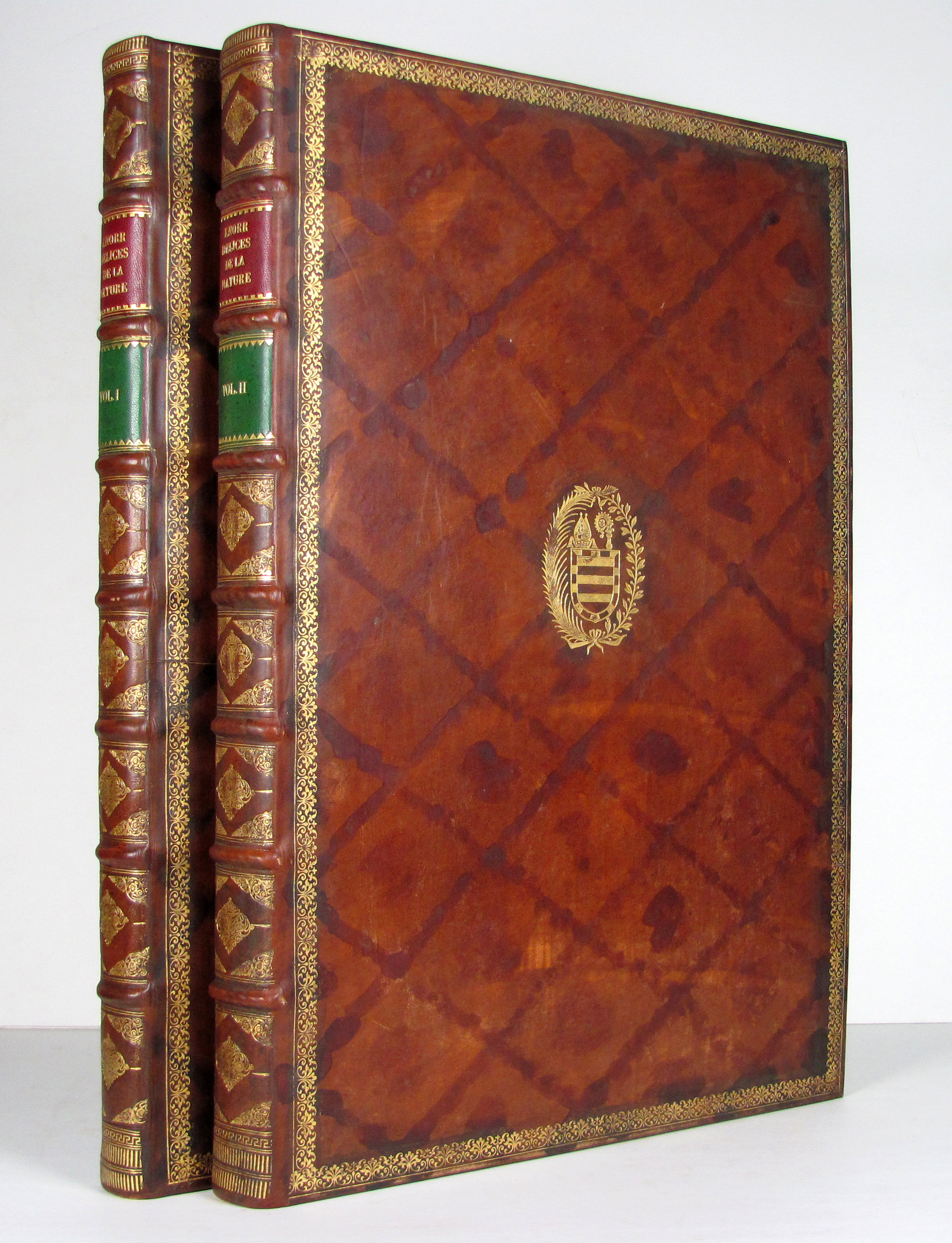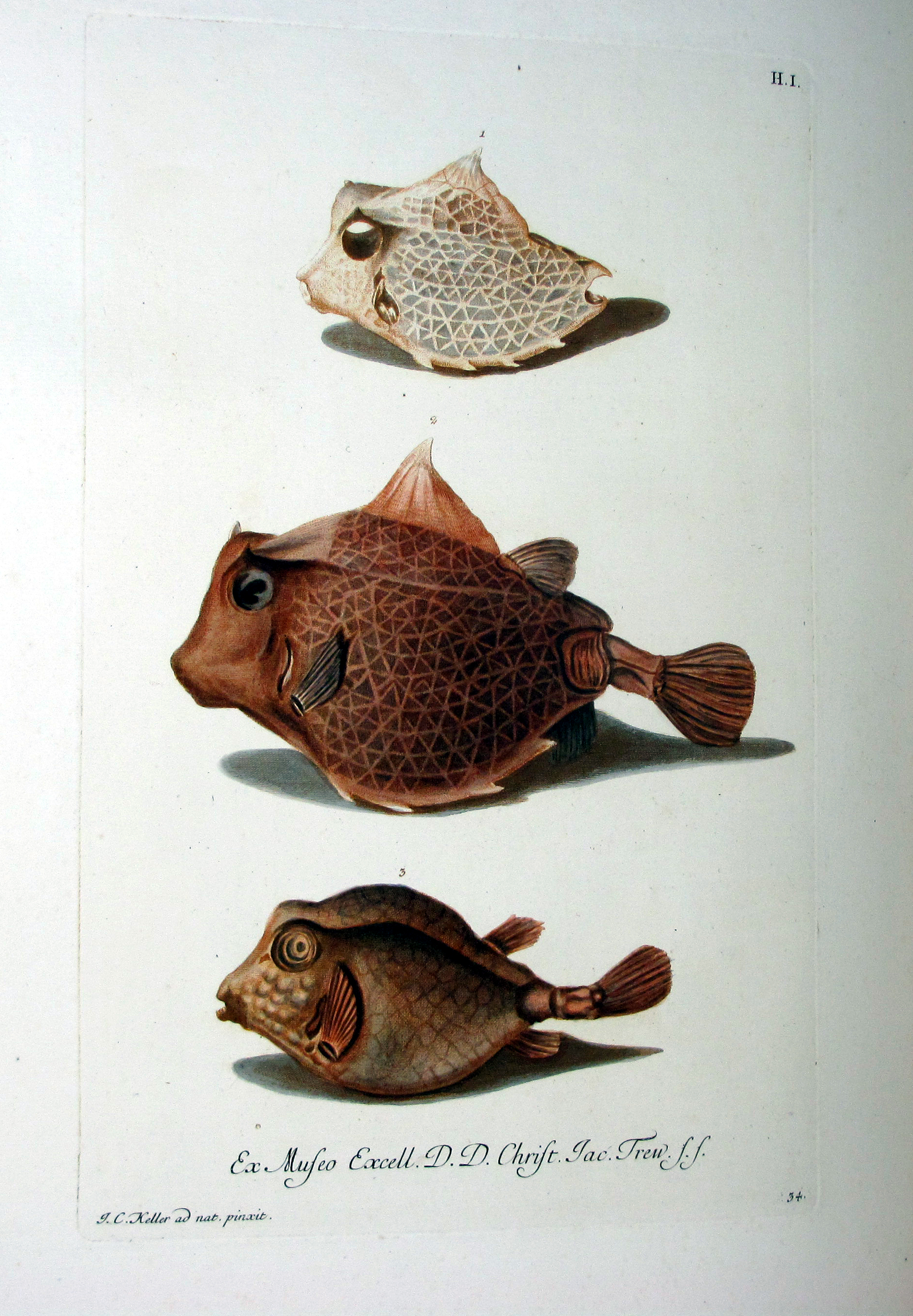 Hervorragend erhaltenes Exemplar eines der schönsten Werke des 18. Jahrhunderts über Naturalienkabinette in der Tradition der Wunderkammern. Erste Ausgabe. Die Qualität der großformatigen und prächtigen Tafeln stellt einen der Höhepunkte der naturwissenschaftlichen Illustration dar. Nürnberg war in dieser Zeit das Zentrum naturwissenschaftlicher Buchillustration und Knorr (1705-1761) mit seinen Werken zu Blumen, Muscheln, Versteinerungen und dem Vorliegenden einer seiner hervorragenden Vertreter. Christoph Jacob Trew, aus dessen Naturalienkabinett viele der abgebildeten Objekte stammen, besaßs eine 34.000 Bände umfassende Bibliothek und schwang sich zum nachhaltigsten Förderer der naturwissenschaftlichen Buchproduktion im Nürnberg des 18. Jahrhunderts auf. Er unterstützte und beauftragte zahlreiche Künstler mit Arbeiten neben G.W. Knorr auch J.F. Dietsch, B.R. Dietsch, J.C. Keller, C.N. Kleemann, J.A. Eisenmann, J.F. Schmidt, A. Hoffer, Christian und C.J. Leinberger u.v.a. Eine unvergleichlich gute Künstlergeneration wirkte zu dieser Zeit in Nürnberg und alle eben genannten schufen auch Aquarelle oder Stiche für das vorliegende Werk. Auch nach Nissen gehört das von Knorr bereits 1751 begonnene Werk neben seinen Conchylien zu den aufwändigsten naturwissenschaftlichen Werken Nürnbergs (vgl. Band II, S. 152). Nach Knorrs Tod im Jahr 1761 wurde es von Philipp Ludwig Statius Müller fortgesetzt und schließlich von Knorrs Erben mit deutsch-französischen Paralleltext herausgegeben.– Das nach Gruppen geordnete Werk behandelt und bildet ab: Korallen (15), Muscheln (7), Schmetterlinge (6), Seeigel (4), Mineralien (6), Hummer und Spinnen (7), Seesterne (4), Fische (9), Vögel (7), Säugetiere (14) und Reptilien (12). Nicht nur die Qualität der Tafeln besticht, geradezu verschwenderisch ist auch der restliche Ausstattung des Werkes. Kräftiges Papier und eine äusserst großzügige Typographie lassen das Buch als Gesamtkunstwerk erscheinen.– Ausnahemexemplar auf besonders grossem Papier (56 x 36 cm.) und von hervorragender Gesamterhaltung. Das schöne Porträt, welches in nur sehr wenigen Exemplaren zu finden ist, ist etwas knapper im Rand und stammt höchstwahrscheinlich aus einem anderen Exemplar.– 1771 erschien eine niederländische Ausgabe, 1778 die vorliegende Ausgabe in zweiter Auflage und 1779 eine französische Ausgabe.– Nissen, ZBI, 2227. Horn-Sch. 2038.