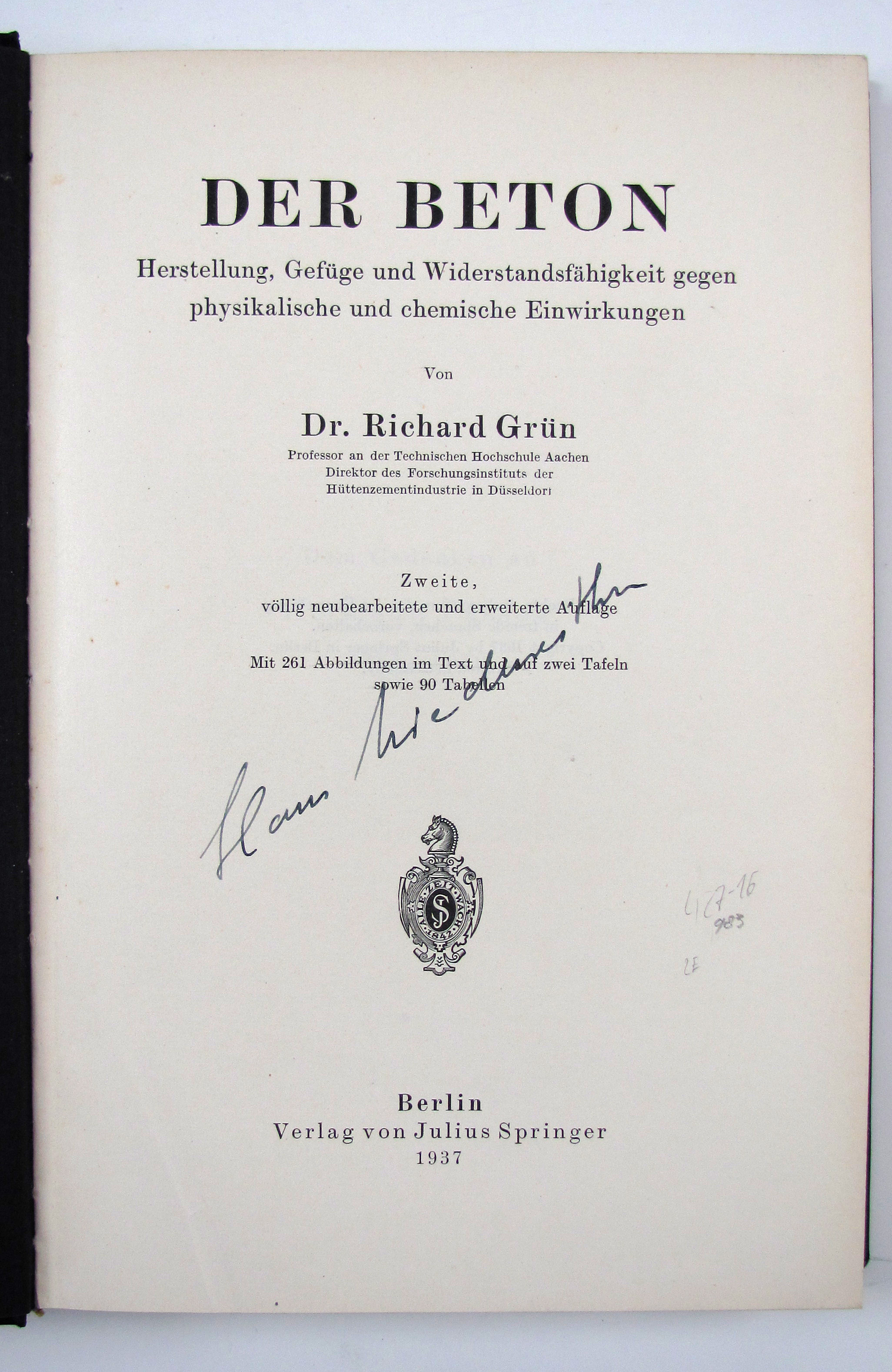 Der Beton. Herstellung, Gefüge und Wiederstandsfähigkeit gegen physikalische und chemische Einwirkungen.